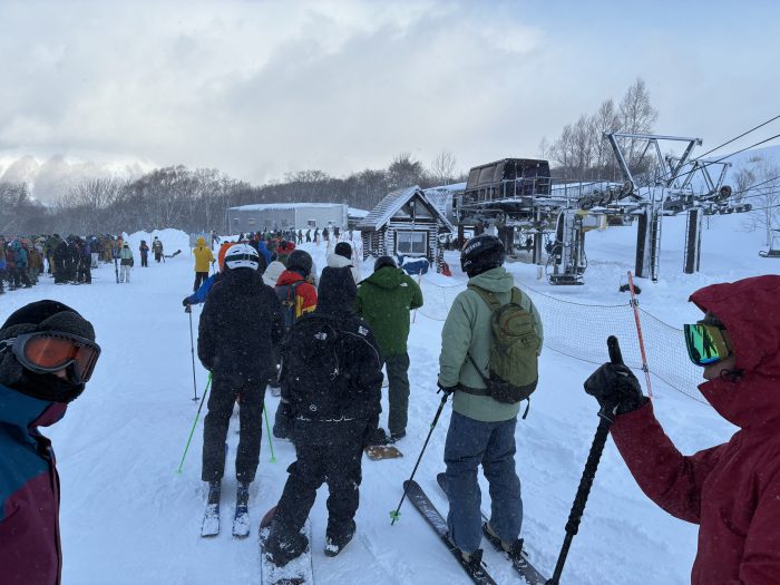 8時10分頃に到着して、朝一から9時スタートのリフト並んで乗りました。