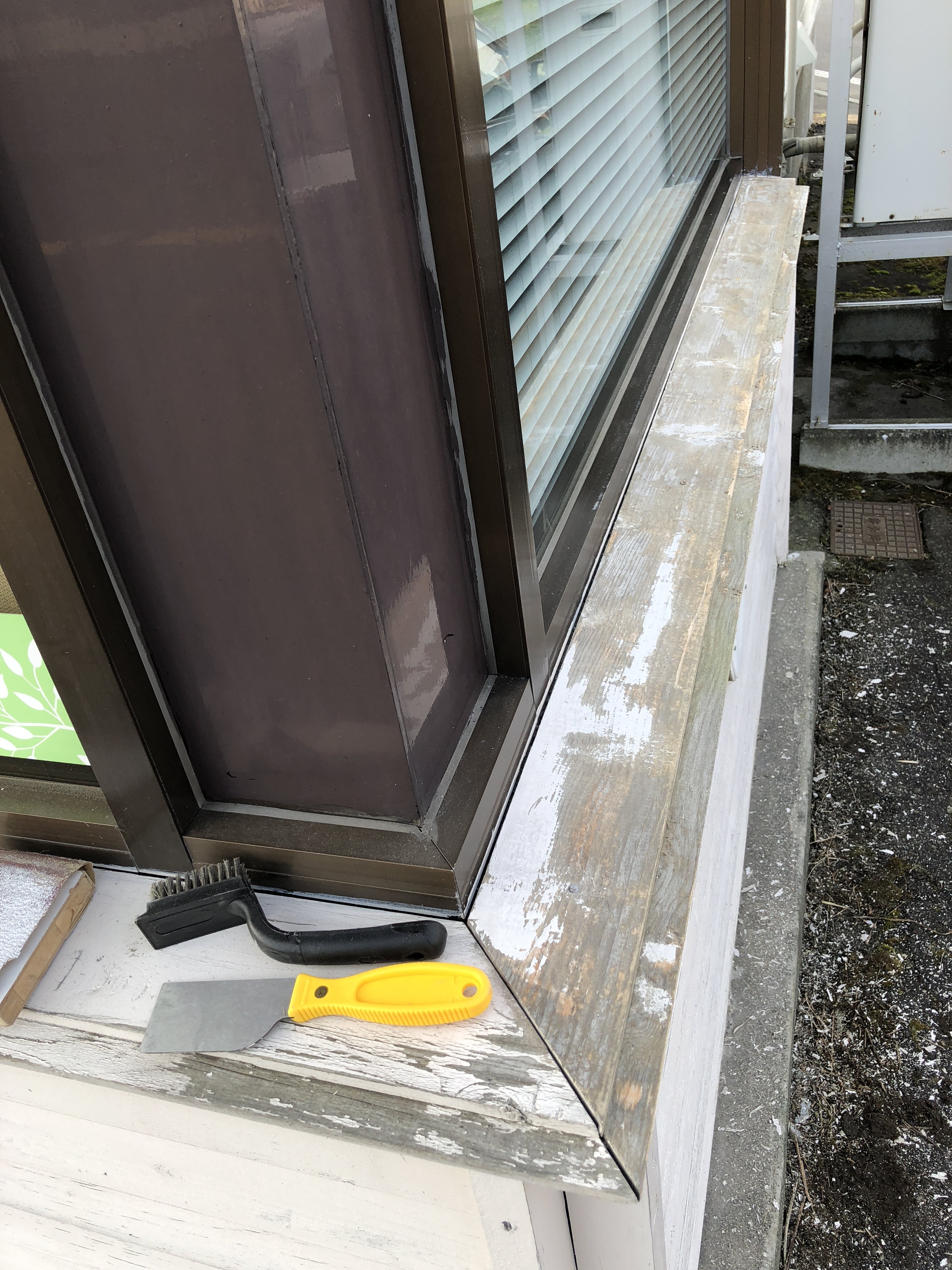ヘラとワイヤーブラシで剥がれやすい塗料を擦って取りペーパーをかけた後に塗料を塗りました。