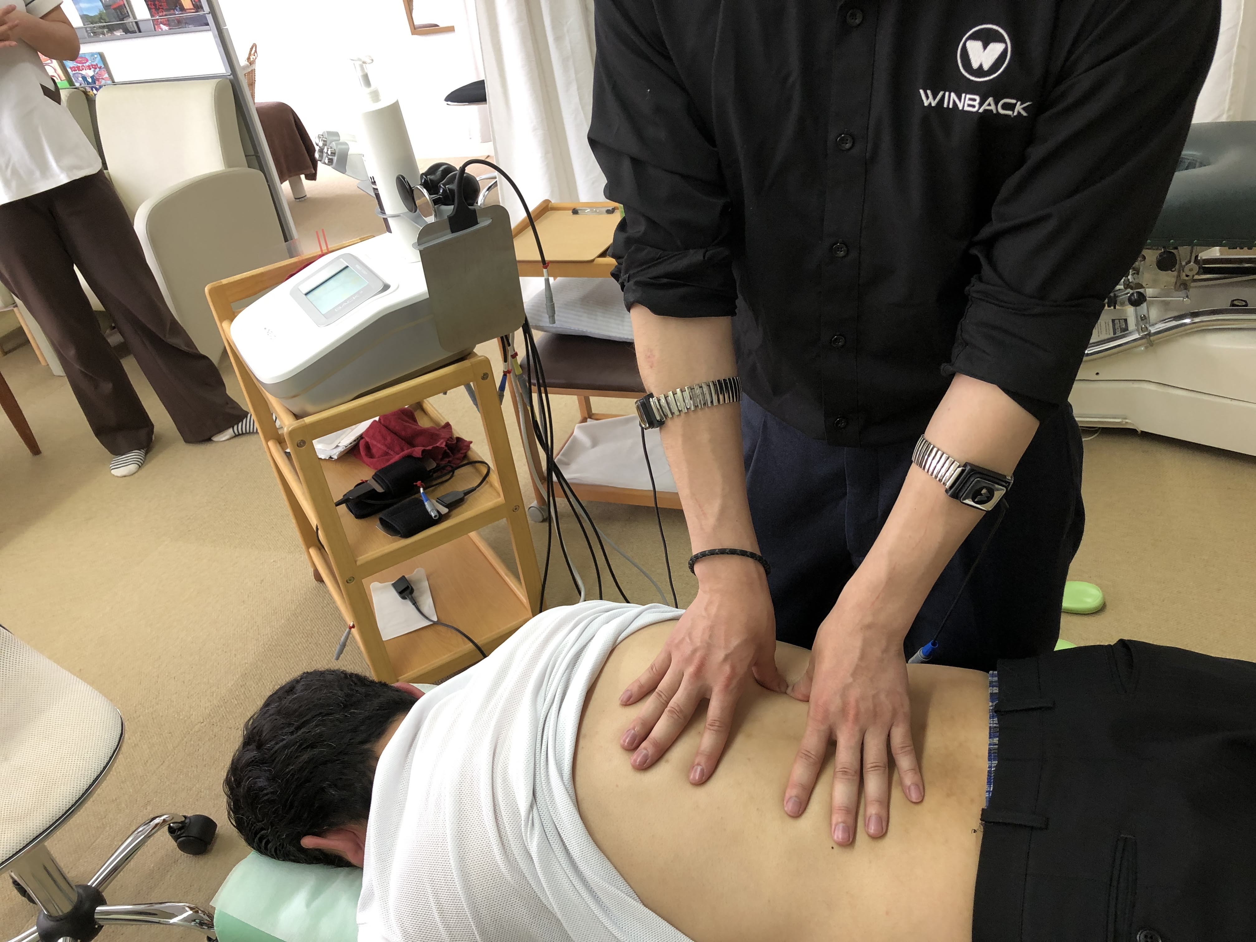 この器械の凄いところは患部を触診しながら、それと同時に施術ができます。